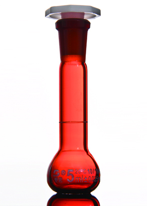 單標線容量瓶簡稱“量瓶”,用于配制準確體積的溶液或溶液的定量稀釋,為量入式(In)玻璃量器。量瓶頸上有一環(huán)形標線,表示20℃時瓶內(nèi)的準確體積。常用的量瓶有10,25,50,100,250,500,1000mL等各種規(guī)格。用硼硅玻璃(耐熱玻璃)制成的200mL以上的量瓶,標有“Bsi"字樣。量瓶的口與塞也應(yīng)有相同的配合號碼。量瓶不能用于貯存溶液,應(yīng)以適當?shù)姆椒ㄞD(zhuǎn)移到試劑瓶中保存。量瓶長期不用時,應(yīng)洗凈后在塞子部位墊上紙,以防日久塞子打不開。
